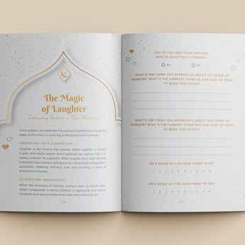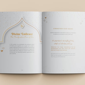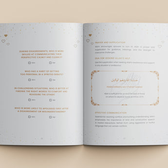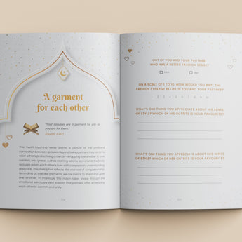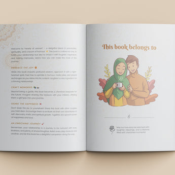 Elevate your journey of love and faith with the Hearts of Jannah Couples Journal, a timeless keepsake specially crafted for Muslim couples. More than just a journal, it's a treasure trove of connection, reflection, and spiritual growth designed to strengthen your bond while nurturing your faith.